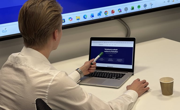 Meille jokainen projekti on ainutlaatuinen kuuntelemme tarpeesi, suunnittelemme räätälöidyn ratkaisun ja toteutamme sen tehokkaasti. Lopputuloksena saat verkkosivut, jotka eivät ainoastaan näytä hyvältä, vaan myös tuottavat tuloksia.
